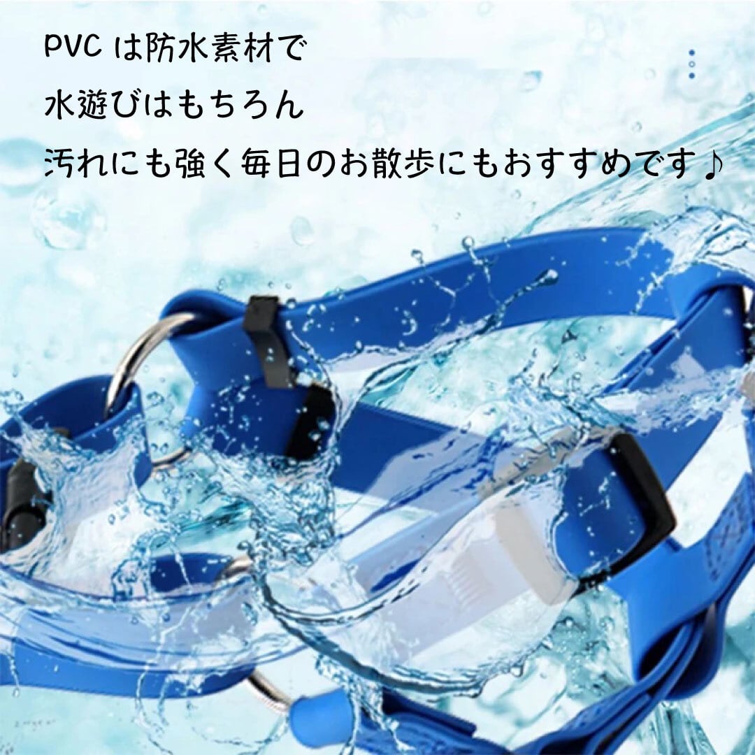 材質にPVCを採用することで、雨の日や水遊びの際もぬれてもすぐに乾くので清潔に保てます。また、シンプルなデザインなので、どんなリードにも合わせることができます。