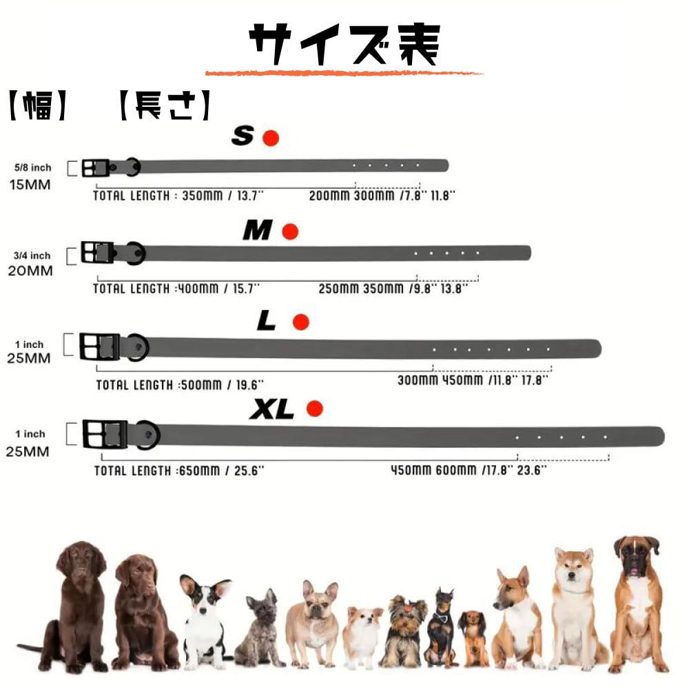 愛犬のサイズにピッタリの首輪が見つかります。